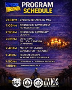 Під час заходу буде організовано збір пожертв (готівкою або e-transfer) на підтримку України.